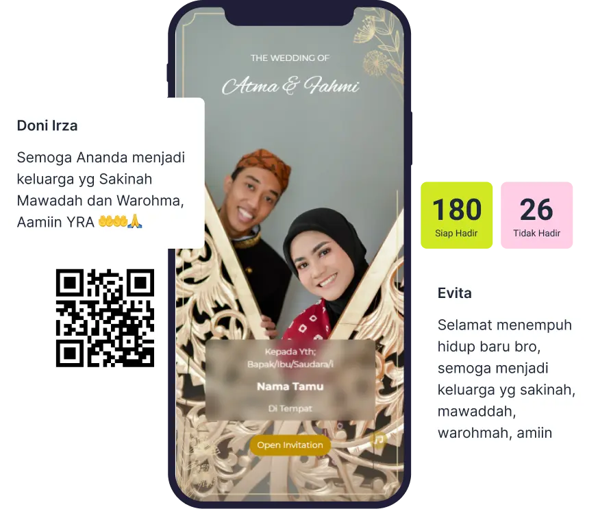 Buat undangan digital yang exclusive untuk masing-masing tamu. Dengan fitur qr code untuk filter tamu yang datang. Scan QR Code untuk memastikan tamu terdaftar.